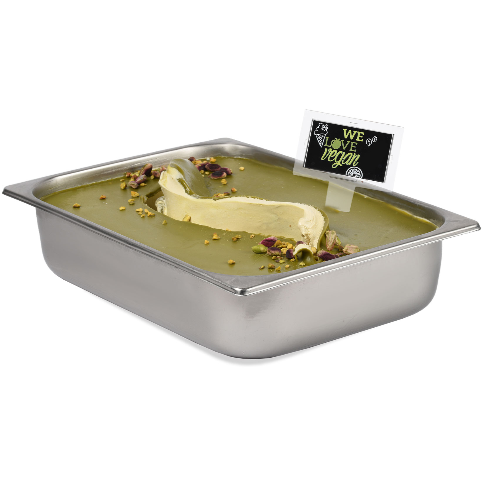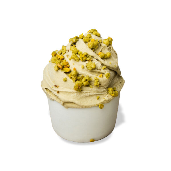 Con trozos de pistachos tostados. vegana y sin azúcares añadidos.