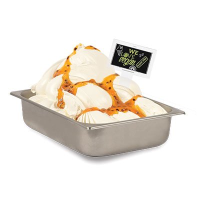 Con mango a cubetti, polpa e semi di passion fruit. Vegano e senza zuccheri aggiunti.